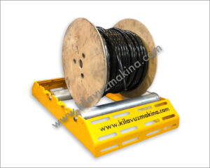 Kablo açma sehpası üzerinde bulunan rulo yuvaları sayesinde farklı çaplardaki kablo makaralarına uygun tasarım.